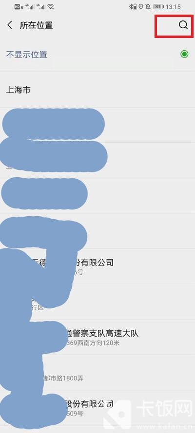 5、进入到所在位置选择界面中后,我们再次点击右上角的【放大镜】进入到搜索位置界面;