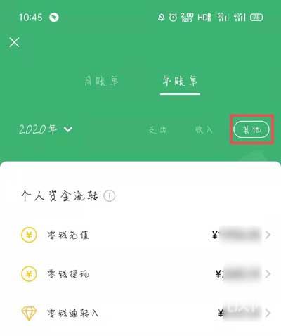 8.最后其他会显示你的个人资金流转,分别是零钱充值、零钱提现、零钱通转入等资金信息。