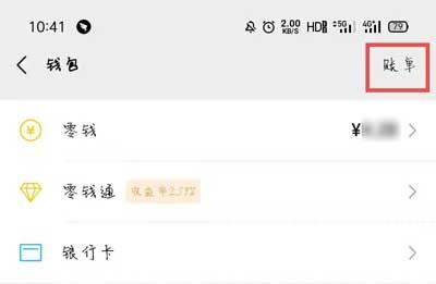 3.进入到账户余额页面之后,点击右上角的【账单】,查看使用微信的消费记录;