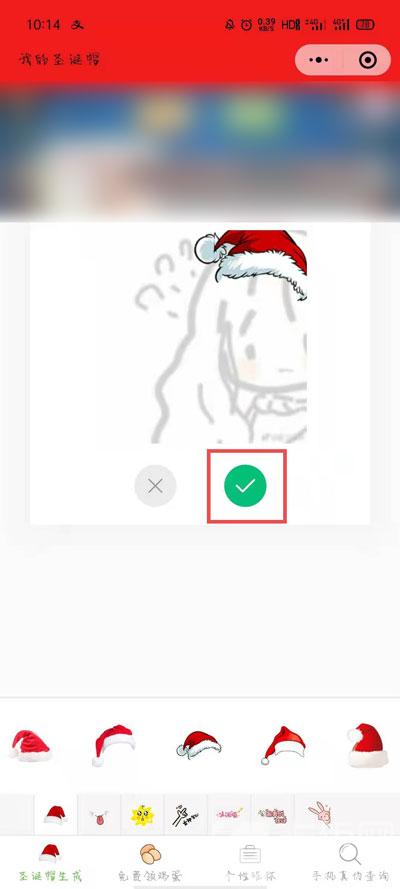 5.选择你想要的头像之后,在小程序的下方找到想要使用的圣诞帽,左右滑动选择;