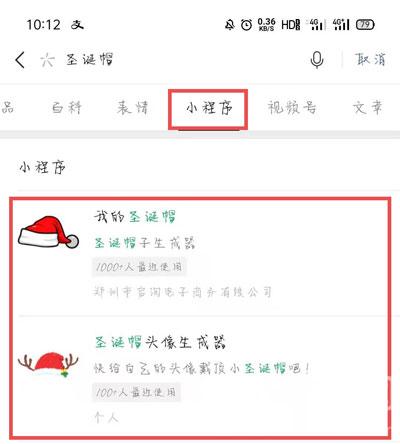 1.快速为头像添加圣诞帽,可以通过小程序实现,打开微信,搜索【圣诞帽】,然后切换到“小程序”;
