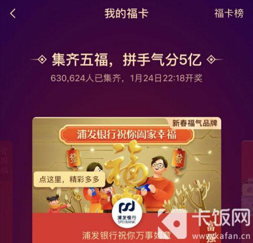 2.福卡的类型有爱国福/敬业福/和谐福/友善福/富强福,花花卡/沾福气卡/万能卡。