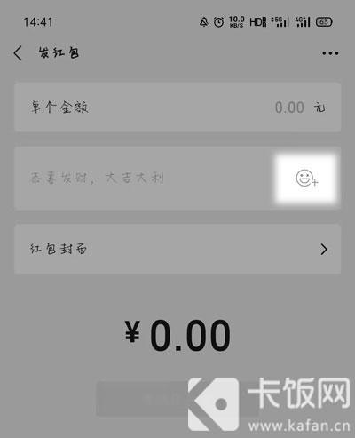 7.进入发红包页面之后,点击祝福语输入框右侧的【添加表情】按钮,选择添加收藏表情;
