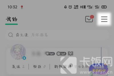 2.进入我的页面之后,点击右上角的三条杠【更多】按钮,打开更多设置;