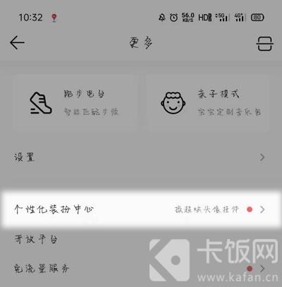 3.在更多设置页面,找到“设置”下方的【个性化装扮中心】,进入设置皮肤、挂件;