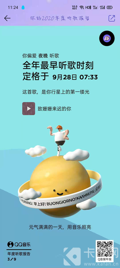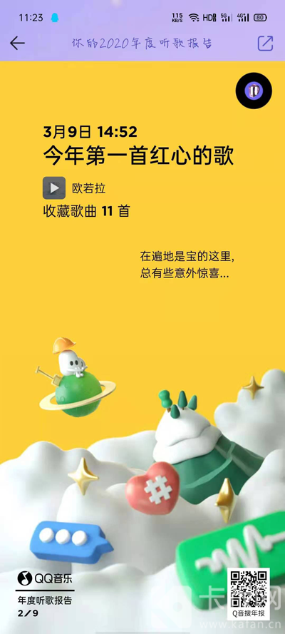 2.随后进入你的2020年度听歌报告页面后,首先看到的是2020年收听到的第一首歌;