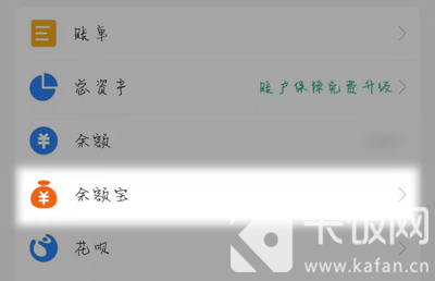 2.然后在我的页面,上下滑动页面找到【余额宝】功能,点击进入余额宝;