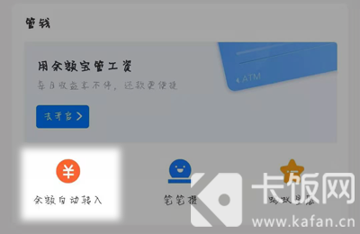 4.在余额宝钱管家中,找到下方的的【余额自动转入】功能,点击进入设置;
