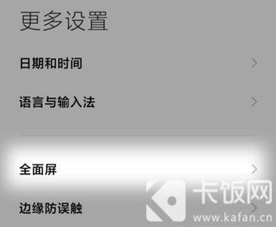 3.在更多设置中,找到【全面屏】设置,因为该横条为全面屏操作时才会出现;