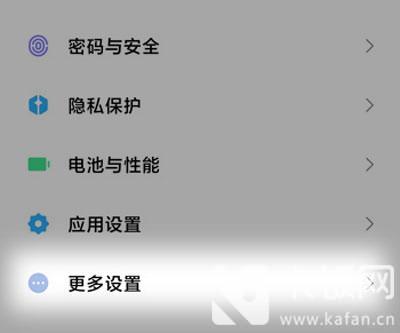 2.进入设置后,往上滑动页面,找到下方的【更多设置】一项,进入设置;