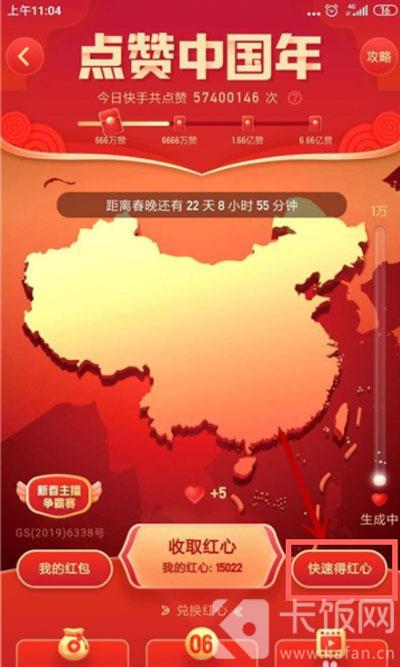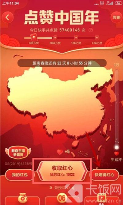 2.随后进入点赞中国年活动页面,点击下方的【收取红心】按钮,收取红心领取现金好礼;