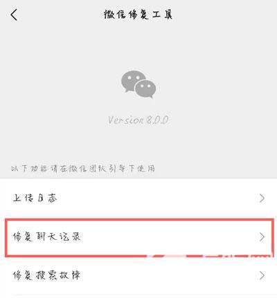 2、进入微信修复工具页面之后,找到【修复聊天记录】一项,进入修改被删除的聊天记录;