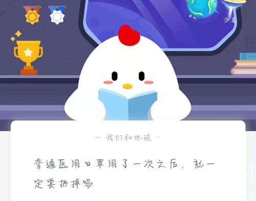 普通医用口罩用了一次之后,就一定要扔掉吗?在支付宝蚂蚁庄园每日一题中,2021年1月30日的问题是问普通医用口罩用了一次之后,就一定要扔掉吗?普通医用口罩用一次就要扔掉吗?普通医用口罩可以用多久?普通医用口罩多久换一次?下面就和小编一起来看看吧!