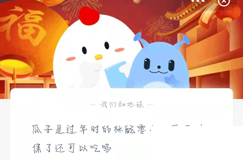 瓜子是过年时的标配零食,瓜子炒焦了还可以吃吗?在支付宝蚂蚁庄园每日一题中,2021年2月18日的问题是问瓜子是过年时的标配零食,瓜子炒焦了还可以吃吗?炒焦的瓜子还能吃吗?瓜子炒焦还可以吃吗蚂蚁庄园?下面就和小编一起来看看吧!