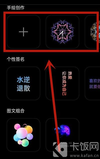 6、可以在提供的样式、个性签名、图文组合等等中选择自己喜欢的,也可以点击【+】进行自定义;