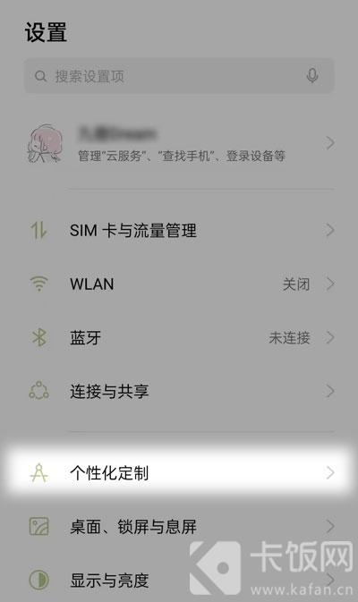 4、开启成功后返回设置,找到设置中的【个性化定制】一项,进入设置手机的主题、铃声等等;
