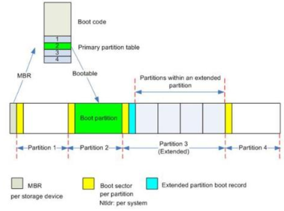 1、最多支持4个主分区。