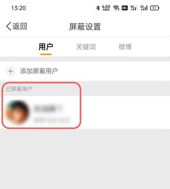 5、拉黑成功之后,将会在我们屏蔽设置用户下方,看到刚刚被拉黑的用户;