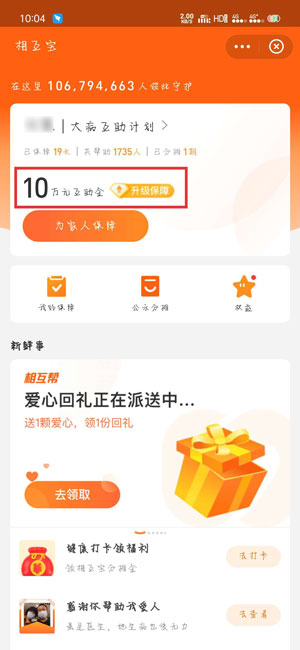 2.点击进入之后,点击上方的个人互助金;
