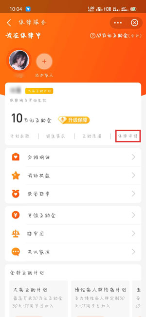 3.进入保障服务页面后,点击【保障详情】进入详情页面;