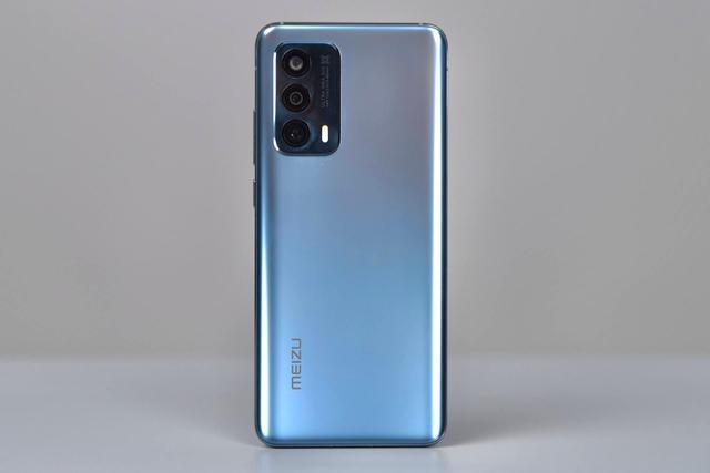 魅族 18共有三种配色选择,分别是踏雪、等风、渡海,图片中的这台就是“渡海”,在细腻的银色之中泛着微微的蓝光,像极了它的手感,魅族 18采用了八曲微弧设计,背壳为玻璃材质打造。