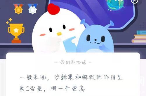 一般来说,沙棘果和猕猴桃的维生素C含量,哪一个更高?在支付宝蚂蚁庄园每日一题中,2021年3月12日的问题是问一般来说,沙棘果和猕猴桃的维生素C含量,哪一个更高?沙棘果和猕猴桃哪个维生素C高?下面就和小编一起来看看吧!
