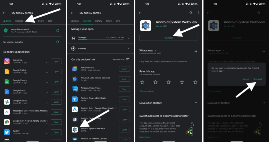 在过去的几个小时里,大量的安卓用户都遇到了一些安卓应用连续闪退的情况,有人发现卸载安卓系统 WebView 就可以停止闪退。