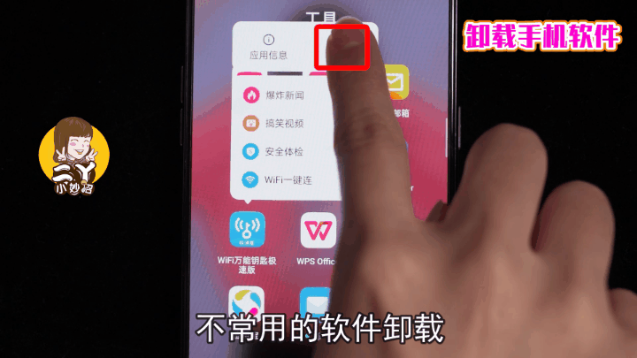 如果微信清理完,手机依然卡顿内存不够,那还可以长按手机桌面上不常用的软件卸载。