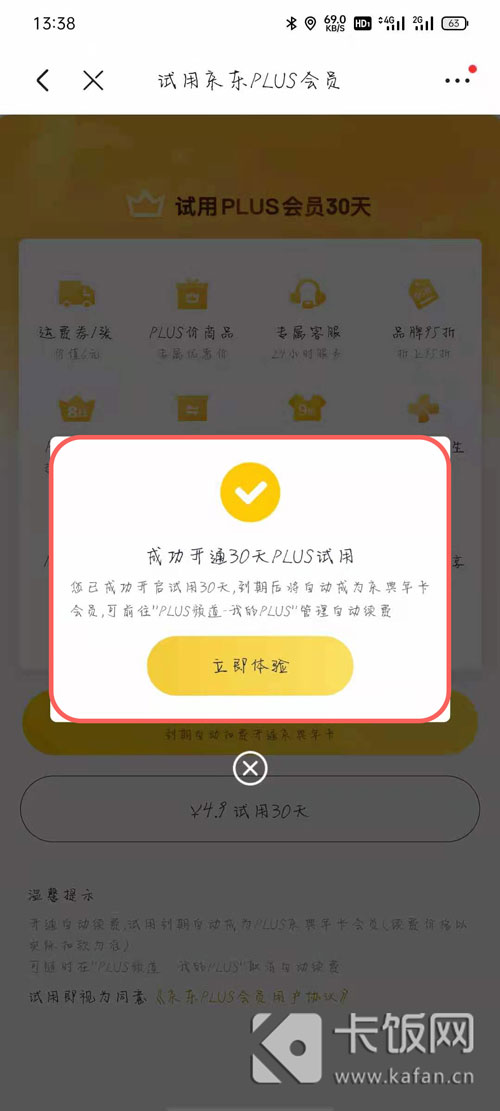 6、最后提示“成功开通30天PLUS试用”,就表示我们已经成功领取plus会员了。
