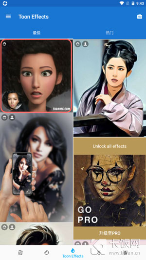 1、打开toonme应用,在首页点击切换到【Toon Effects】,也就是一个火焰的图标;
