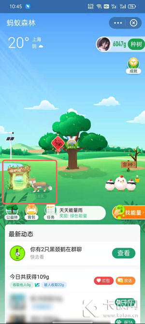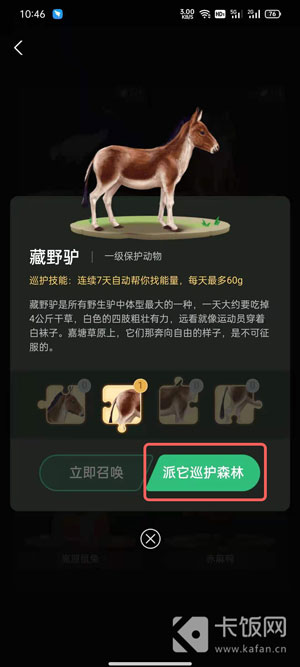 5、在指派该动物巡护森林之后,返回蚂蚁森林,在保护的右侧可看到该动物,表示成功指派。