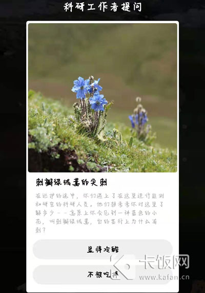 刺瓣绿绒嵩它的茎秆上为什么有刺?在支付宝蚂蚁森林保护地巡护玩法中,我们在巡护的过程中回到一些问题,只有回答正确才可以获得动物拼图,那怎么回答这个问题呢,下面就和小编一起来看看正确答案吧!