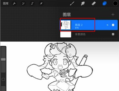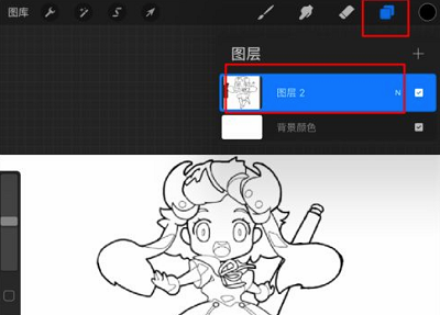 1、首先打开procreate软件,然后进入选中一张线稿,然后点击右上角的的【图层】,选中线稿的图层;