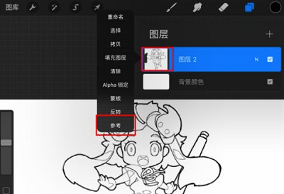 3、操作完成后图层下方会出现【参考】的字样,就可以随意的进行填色了;