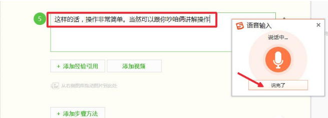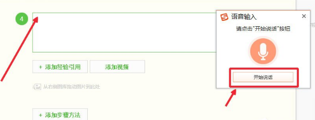 4. 把光标放在需要输入文字的地方,然后点击开始说话;