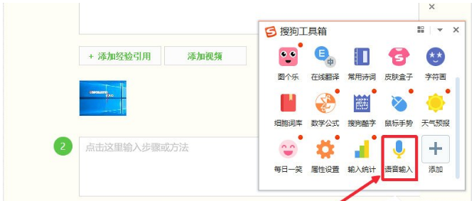 1. 电脑正常连接麦克风以后就可以使用语音输入了,使用搜狗输入法,点击浮动条上的工具箱按钮;