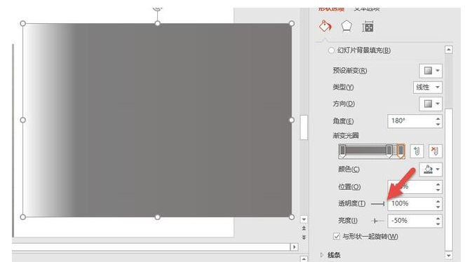 透明渐变效果是怎么绘制的呢?关键点就是在对应的渐变色位置设置透明度为 100%,就会出现透明的渐变。