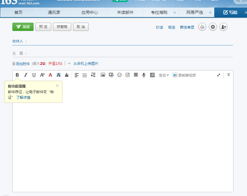 163 网易邮箱写信步骤和 QQ 邮箱基本一致,格式为 xxxx@163.com。