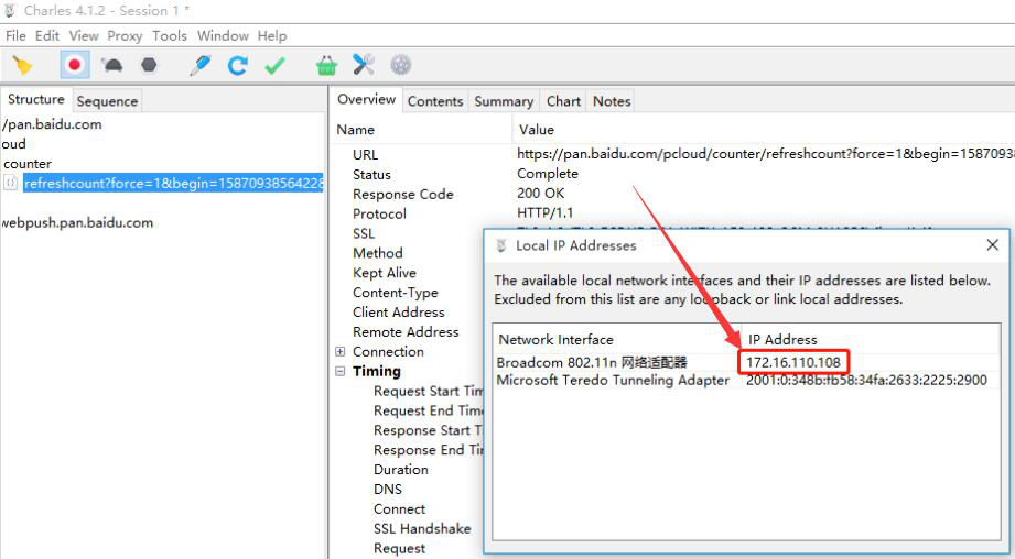 6. 在弹出的窗口中,将 Charles 的 IP 地址记住,下一步会用到。