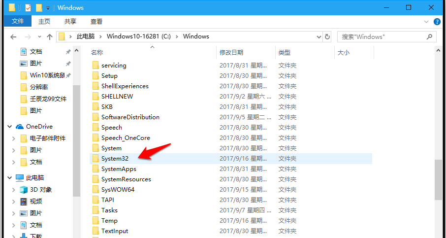 如图,找到 System 32 文件夹并双击打开,