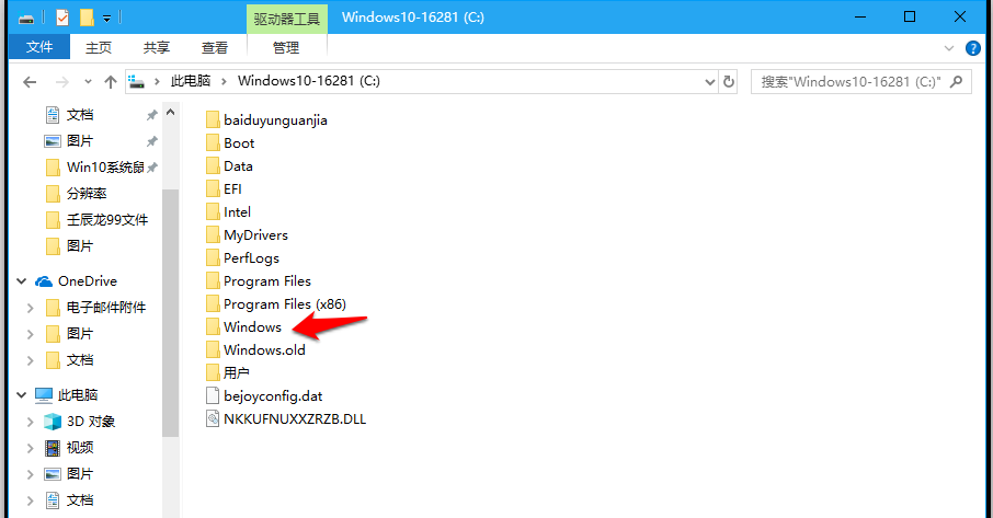 打开系统盘,找到并双击 Windows 文件夹,