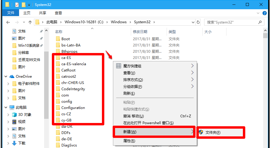 在 System 32 文件夹中没有看到 clip 文件夹,鼠标右击空白处,点击“新建”->“文件夹”,