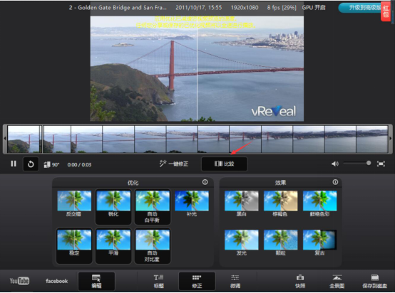 6. 用户利用 vreveal 修复模糊视频,还可以点击预览图下方的“比较”按钮来对比修复前后的效果,中间白色线条分开,左边是未修复的效果,右边是修复后的效果。