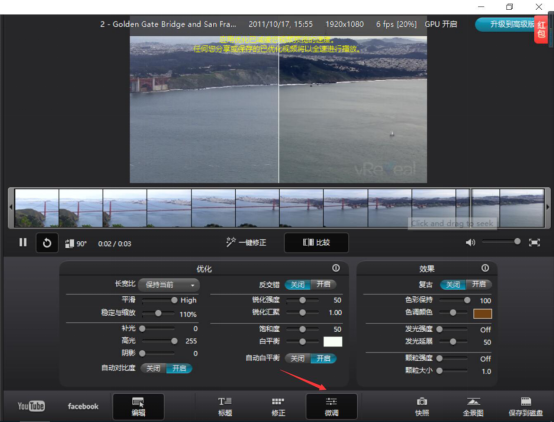 5. 在 vreveal 修复模糊视频的过程中,用户还可以对刚才应用了修正效果的视频进行更精细化的修复。点击“修正”旁边的“微调”即可自行修复。
