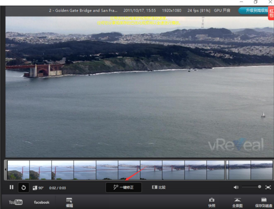 2. 在 vreveal 视频修复软件的右侧窗口,可以预览模糊视频的内容。如果用户只是想稍微修复,那可以点击预览图下方的“一键修正”,vreveal 即可修复模糊视频。