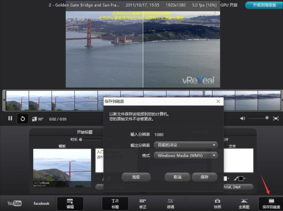 7. vreveal 修复模糊视频的上述操作全部完成后,点击主界面右下角的“保存到磁盘”对修复后的视频进行保存即可。
