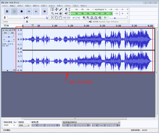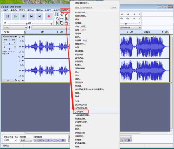有时候用户想要将歌曲中的人声去掉只保留节奏以便用作伴奏或背景音乐,这个时候使用 Audacity 应该如何操作才能消除人声呢?下面我们就来演示一下。