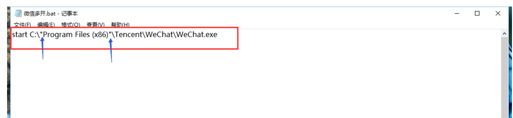 5. 在地址前面添加 start,即“start+空格”,然后将地址进行复制粘贴,需要开设几个微信,则复制几个地址