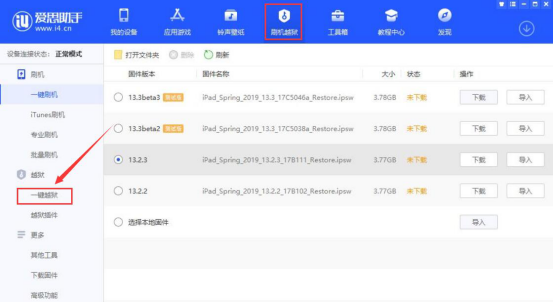 1. 首先,我们将需要制作越狱的U盘插到电脑。当爱思助手将 U 盘识别后,点击“刷机越狱”中的“一键越狱”。