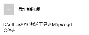 添加排除项,将 KMSpico 激活工具所在文件夹添加到排除项,如图,